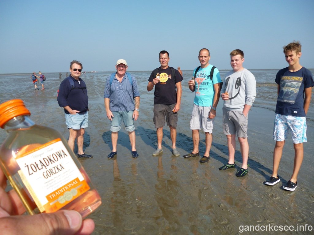 Zu acht sind wir rüber auf die Insel. 6 zu Fuß und 2 mit dem Wattwagen. Schon um 6 Uhr haben wir uns getroffen, dann ca. 2 Std. mit dem Auto nach Sahlenburg.